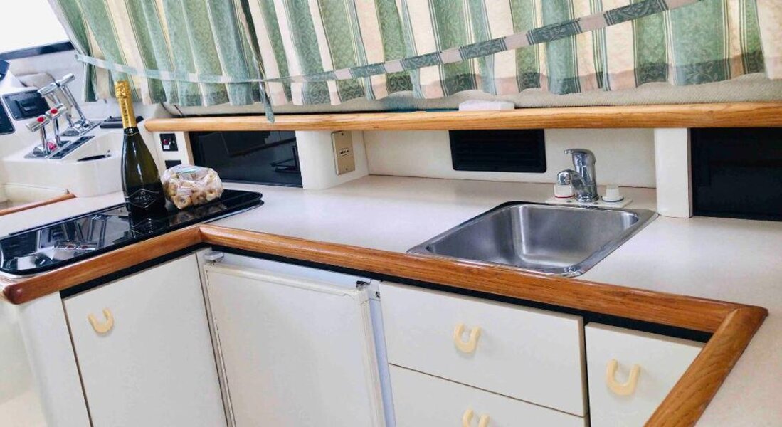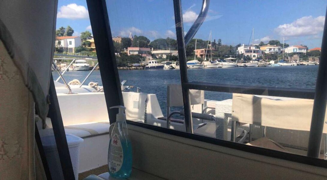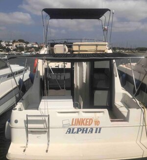 La barca è una Bayliner Ciera 3058 Command Flybridge americana, con due motori Mercruiser per 400 cv totali a benzina. Molto alta internamente, sia in dinette che in bagno sono circa 1.85 cm di altezza. Molto comoda per essere 9.32 mt x 3.05 di larghezza.