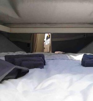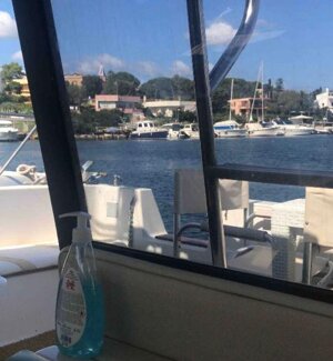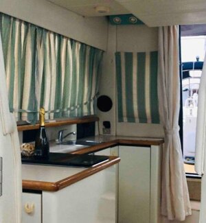 The boat is fully equipped with all comforts, including two showers (one indoor and one outdoor) with hot water, a spacious kitchen, wardrobes, and storage compartments for clothes. It features open spaces with sofas, a table, awnings, and relaxation areas. It's like a small apartment with 3 sleeping areas to comfortably accommodate you in a enclosed space.