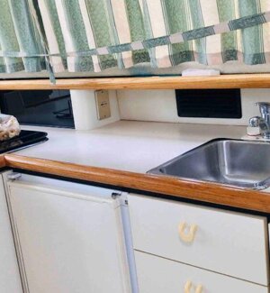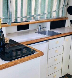 La barca ha tutti i confort, due docce, una interna ed una esterna con acqua calda, una cucina capiente, armadi e vani ripostiglio per i vestiti. Spazi aperti con divanetti e tavolino, tendalini e zone relax. Un piccolo appartamento con 3 zone notte per accogliervi con comodità in uno spazio racchiuso.